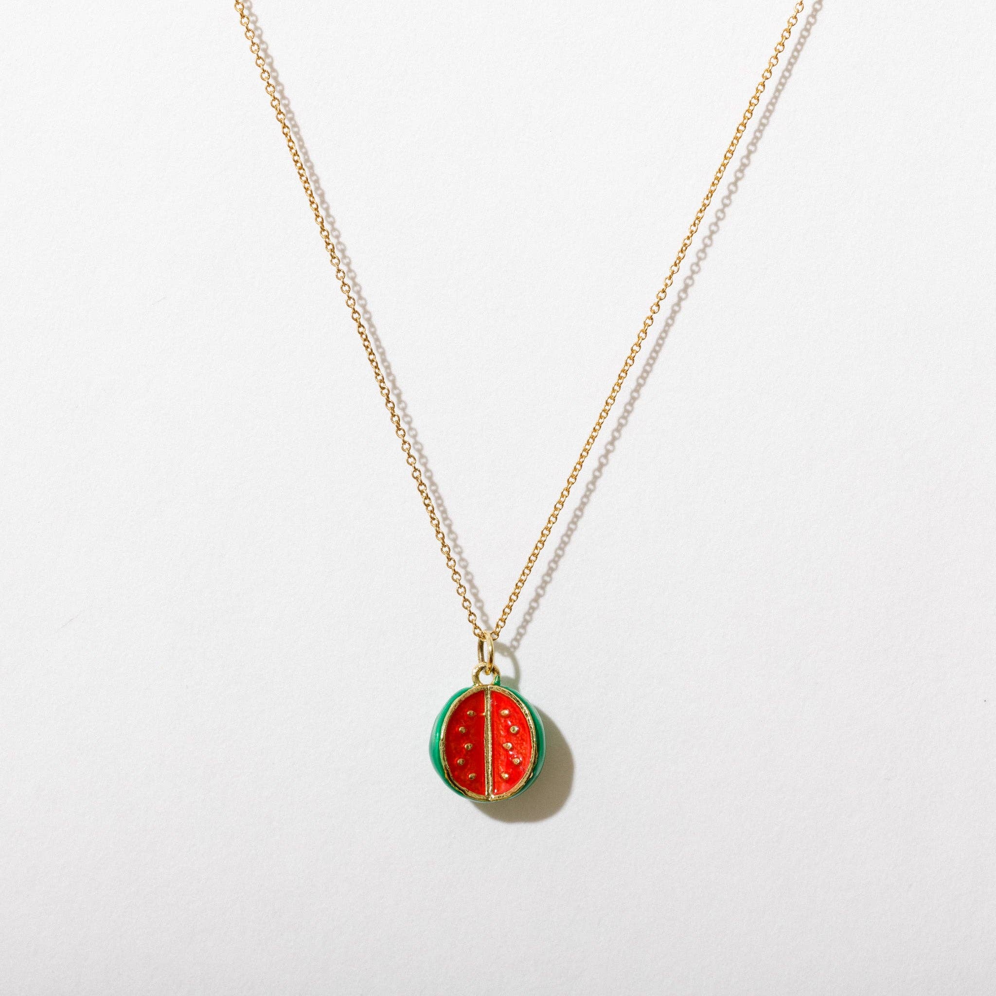 Product Info Fruit cocktail, anyone? DETAILS - 14k gold plated sterling silver chain with enamel fruit charm pendant Nickel-free and naturally hypoallergenic Adjustable length - can be worn at 16, 17 or 18 inches Brand: Larissa Loden